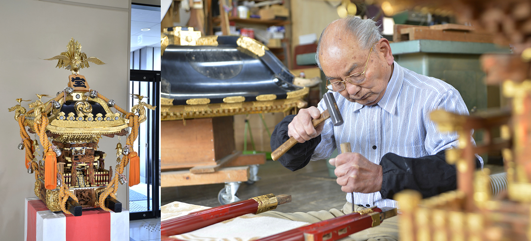 小川政次氏の江戸神輿は、わが国独自の、最高点に到達した建築技術を継承してつくられており、現在も伝統技法を守り抜いています。 氏は神輿の組立技能、神輿の屋根づくりの技法、普及型神輿の考案開発と卓越した力を発揮し、業界から高く評価されています。