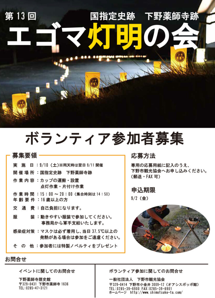 【ボランティア募集中】第16回下野薬師寺エゴマ灯明の会」(外部リンク)