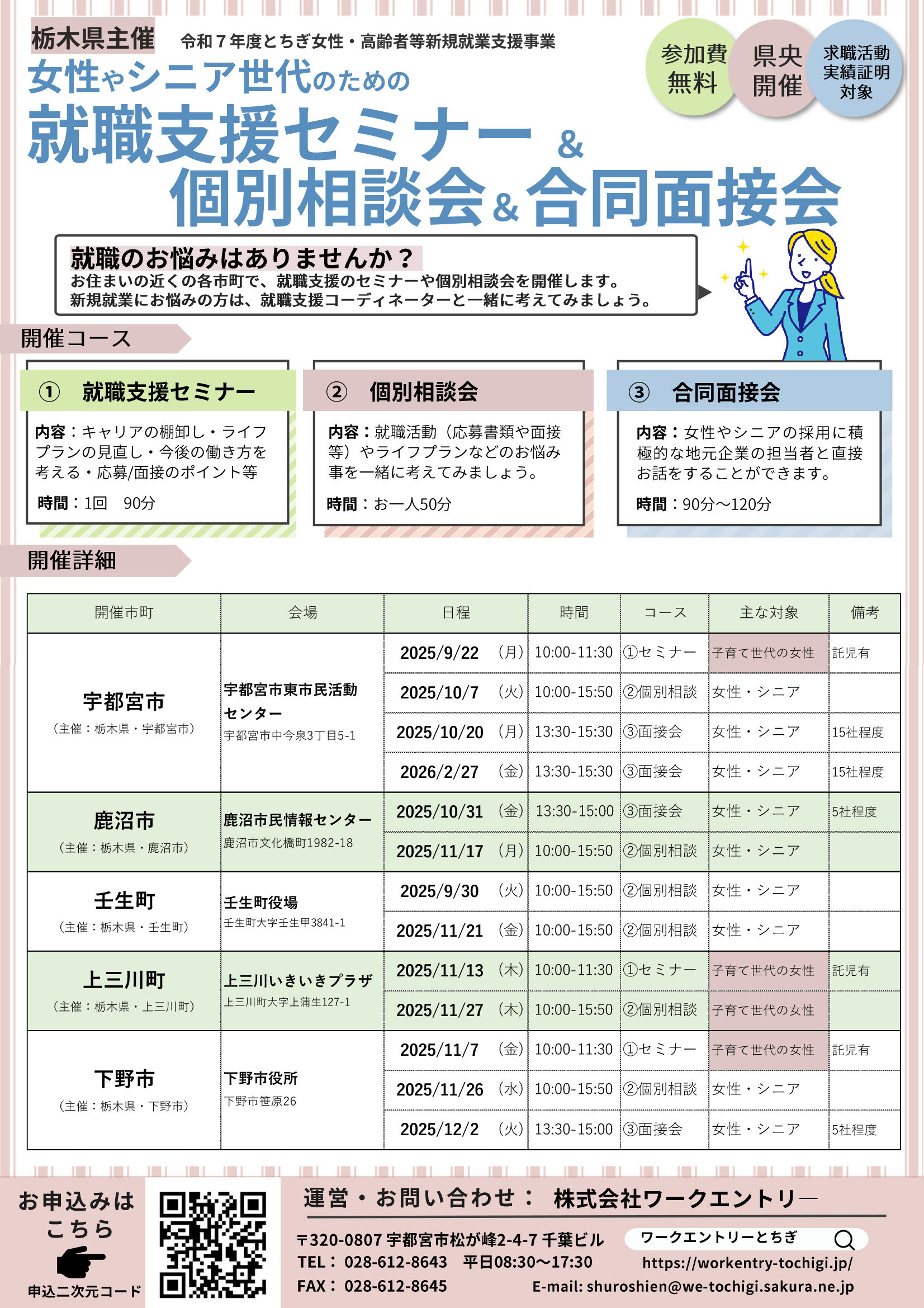 女性とシニアのための就職支援セミナー&個別相談会&合同面接会