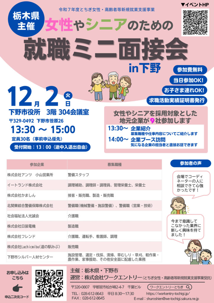 ■合同面接会「女性やシニアのための就職ミニ面接会」