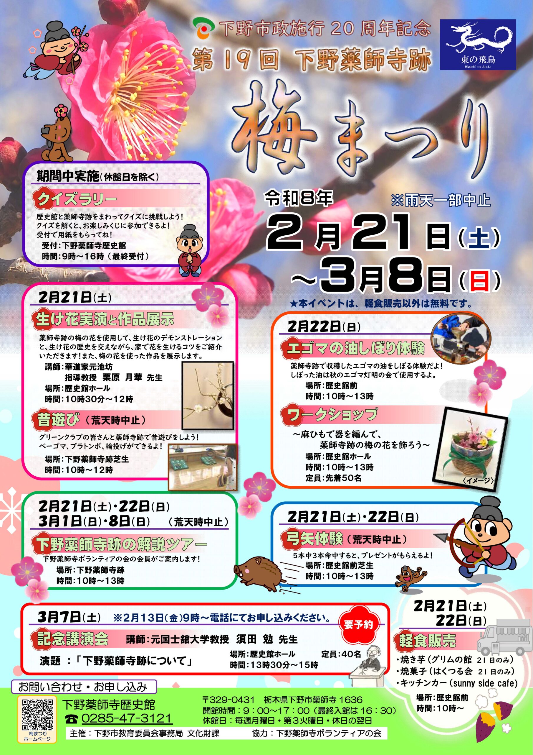 「【下野薬師寺歴史館】市制施行20周年記念 第19回下野薬師寺跡梅まつりを開催します」(外部リンク)